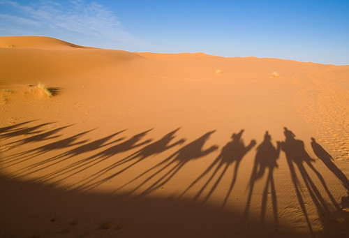 Salida matinal hacia la ruta por el desierto de las mil kasbahs, visita del Kasbah de Amrédhyle en Skoura. Continuación hacia la capital de la rosa Kalaa Mgouna. Usted sube al Valle de Dades hasta Boumalne para continuar hacia Tinghir y visita de las Gargantas de Toudra (15 km de Tinghir), almuerzo en el sitio. La tarde, salida hacia la ciudad de Erfoud atravesando el palmeral de Tinjdad, el palmeral de Touroug y la ciudad de Erfoud. Visita del taller de la producción de mármol de los fósiles. Continuación hacia las dunas impresionantes de Merzouga (Erg Chebi). Intercambio de vehículo contra los dromedarios para admirar la puesta del sol y pasar la noche al hostal. Cena y noche al hostal.